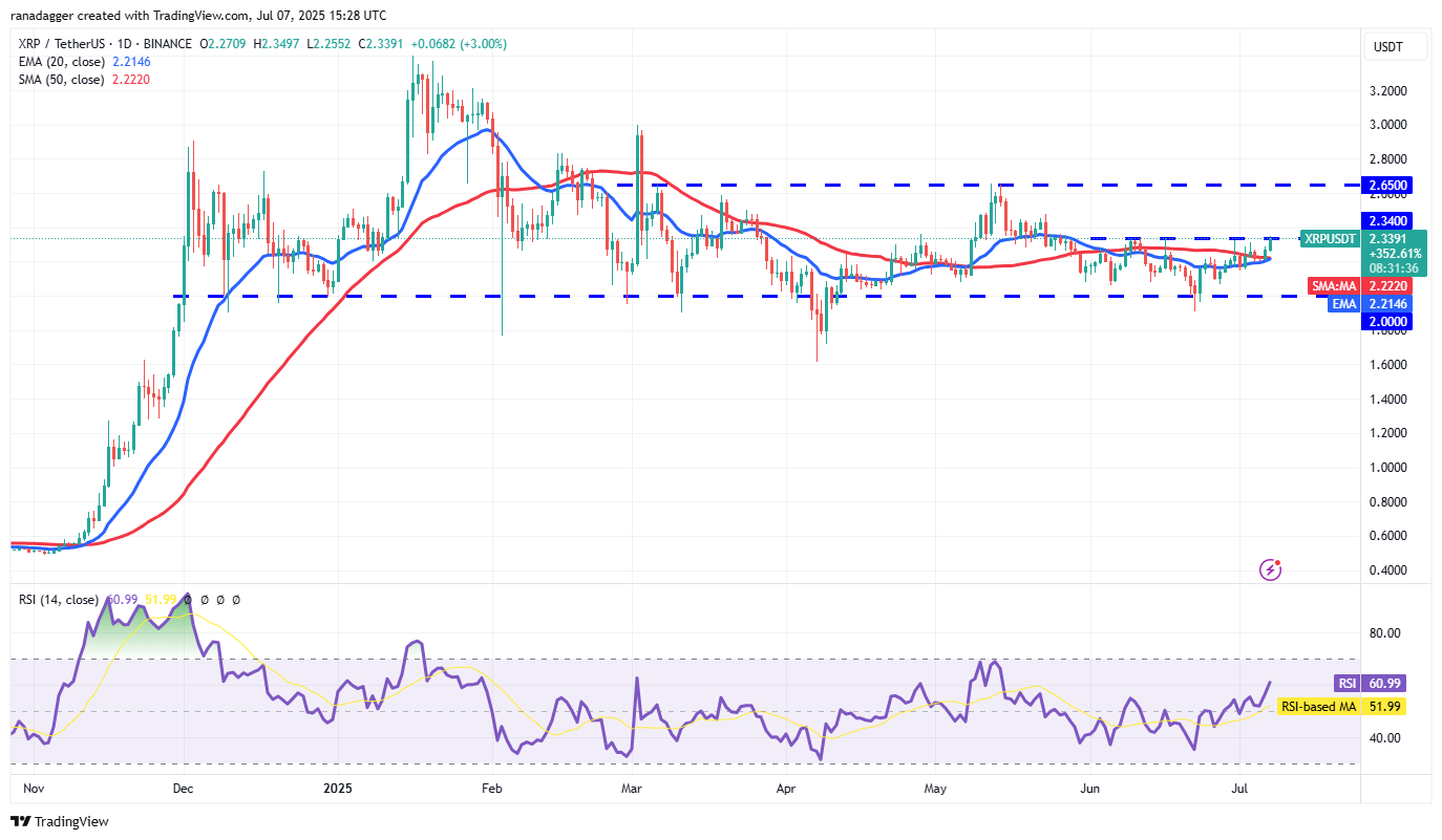 Buyers have managed to sustain XRP (XRP) above the 20-day EMA ($2.20) for the past few days, signaling a lack of aggressive selling by the bears.