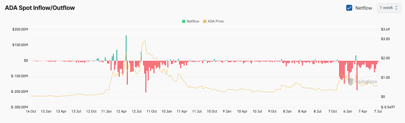 According to CoinGlass, investors withdrew $8.17 million worth of ADA from centralized exchanges over the past week, moving it into private wallets for long-term holding.