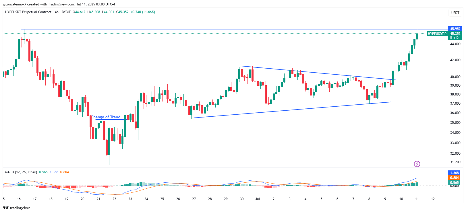 Despite this small rise, it was enough to make a new ATH of $46.32 for HYPE. To note, it was only a few points above the previous peak of $45.50.