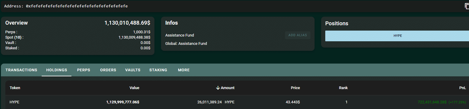Meanwhile, the Hyperliquid Assistance Fund has accumulated 26 million HYPE via consistent buys from HyperCore over the past seven months.