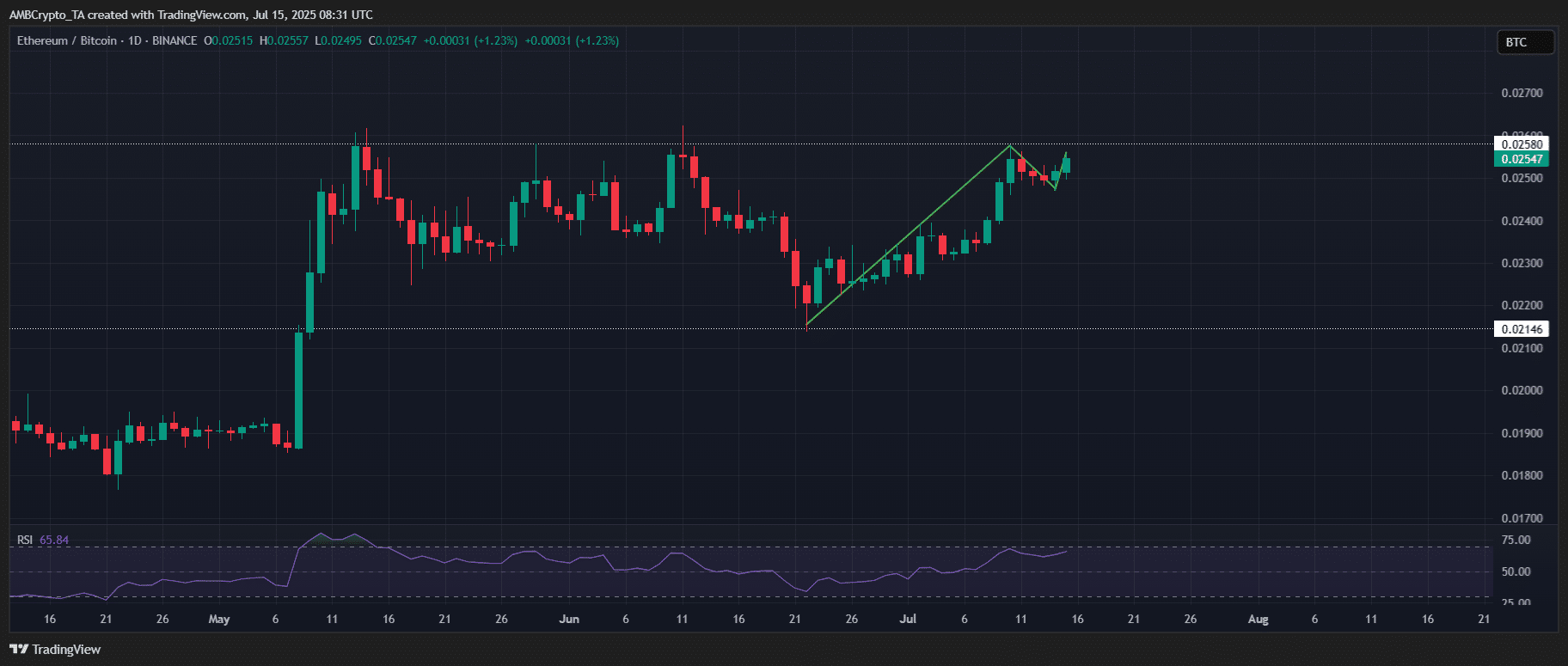The ETH/BTC ratio has posted two straight green candles, hinting that as Bitcoin [BTC] struggles at resistance, capital could be quietly rotating into Ethereum.