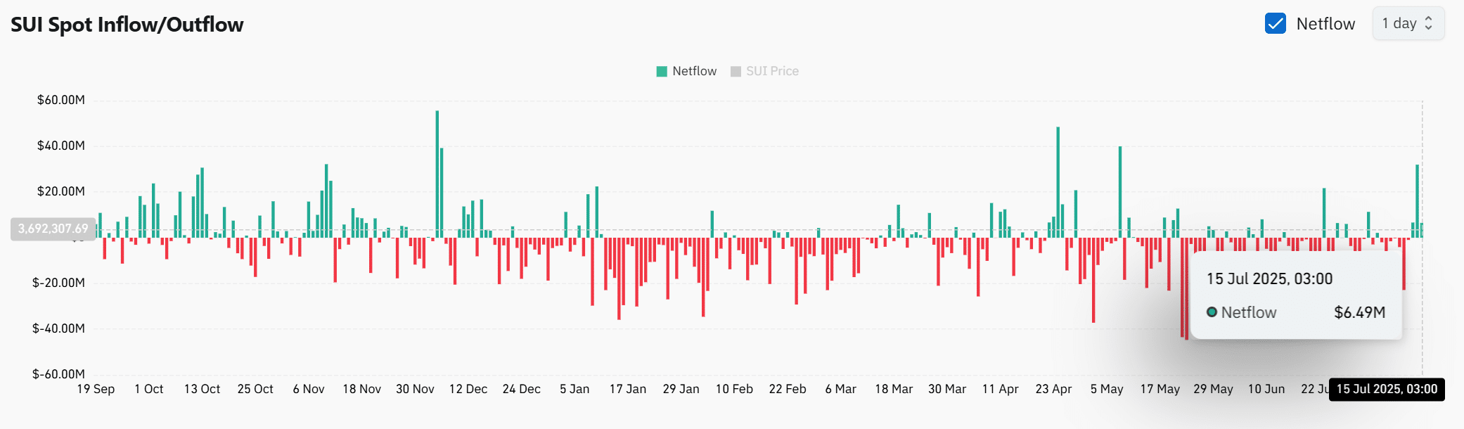 On-chain data revealed that SUI recorded $6.49 million in positive netflow at press time, indicating that tokens moved onto exchanges at their highest level in weeks.