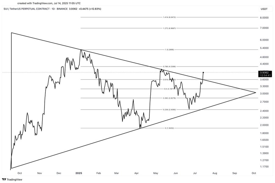 Sui [SUI] has finally broken above the multi-month triangle pattern that has constrained its price since early 2024.