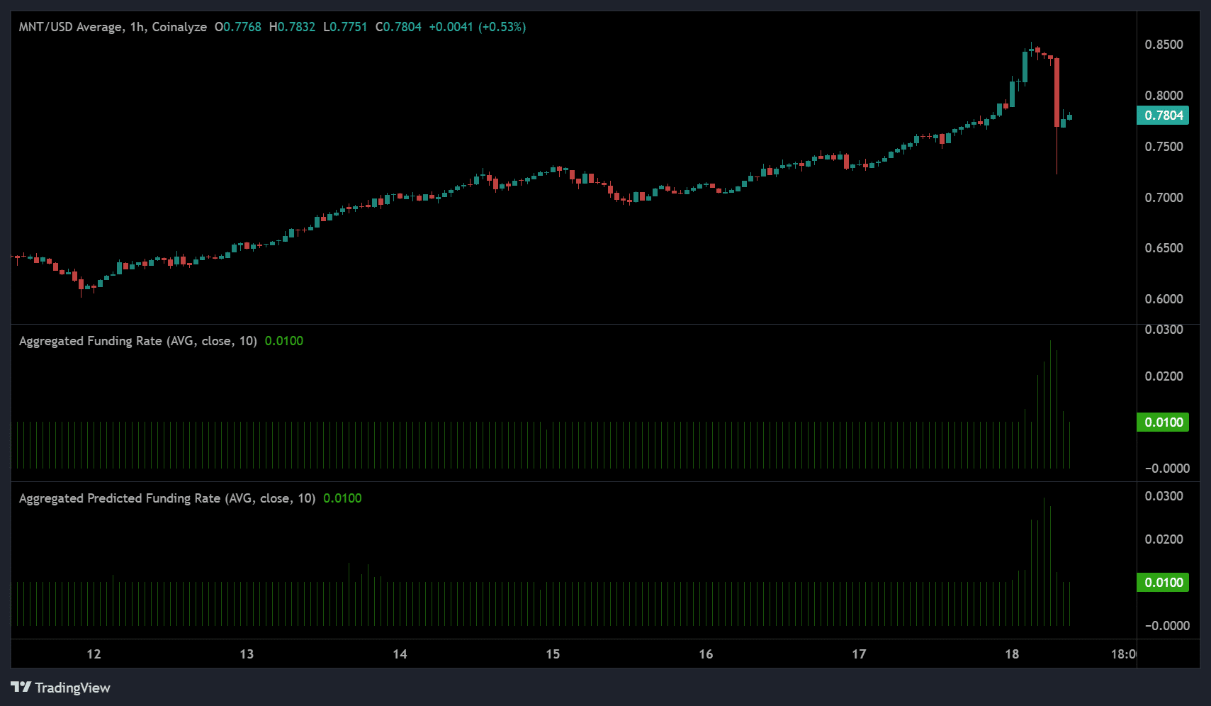 On daily charts, the altcoin surged from a low of $0.72 to a 2-month high of $0.85. After reaching these levels, MNT faced a solid rejection, leading to a retracement.