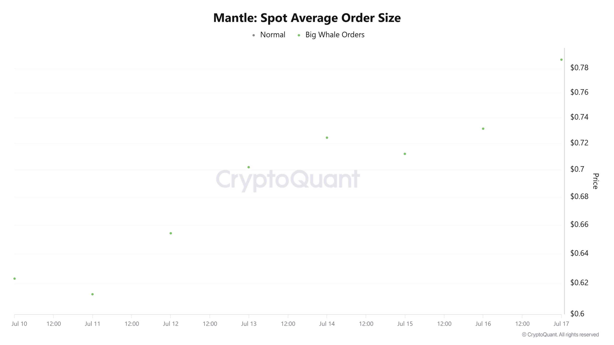 That said, to maintain the upward momentum, buyers need to regain strength and displace the creeping sellers. If they do, Mantle will reclaim $0.80 and target $0.87.