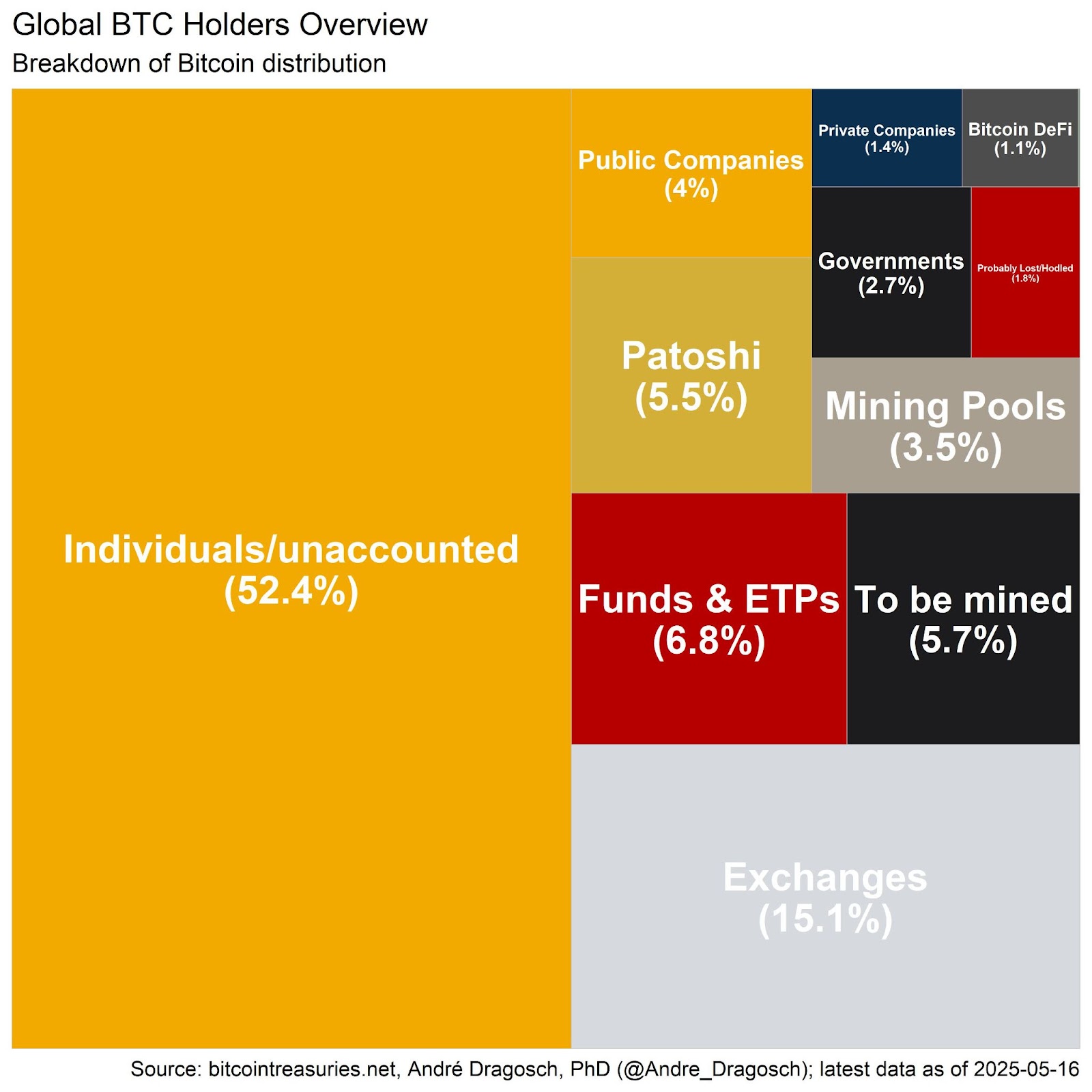 As far as a detailed breakdown of the holders is concerned, although the Bitcoin blockchain is highly transparent, the semi-anonymous nature does not allow for a direct identification of holders.