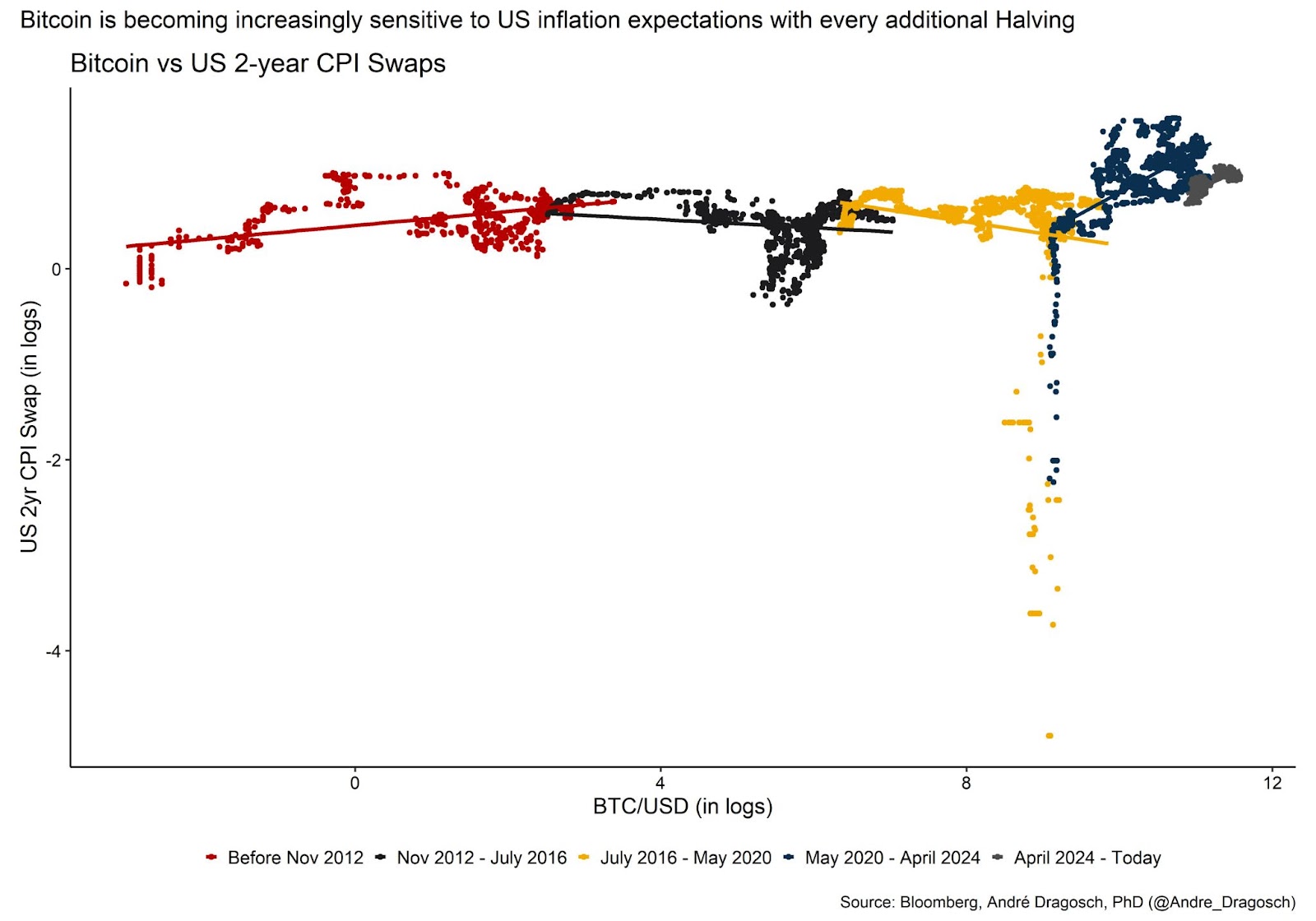 What is more is that bitcoin has shown an increasing sensitivity to market-based inflation expectations such as medium-term U.S. CPI swap rates or U.S. TIPS breakeven rates.