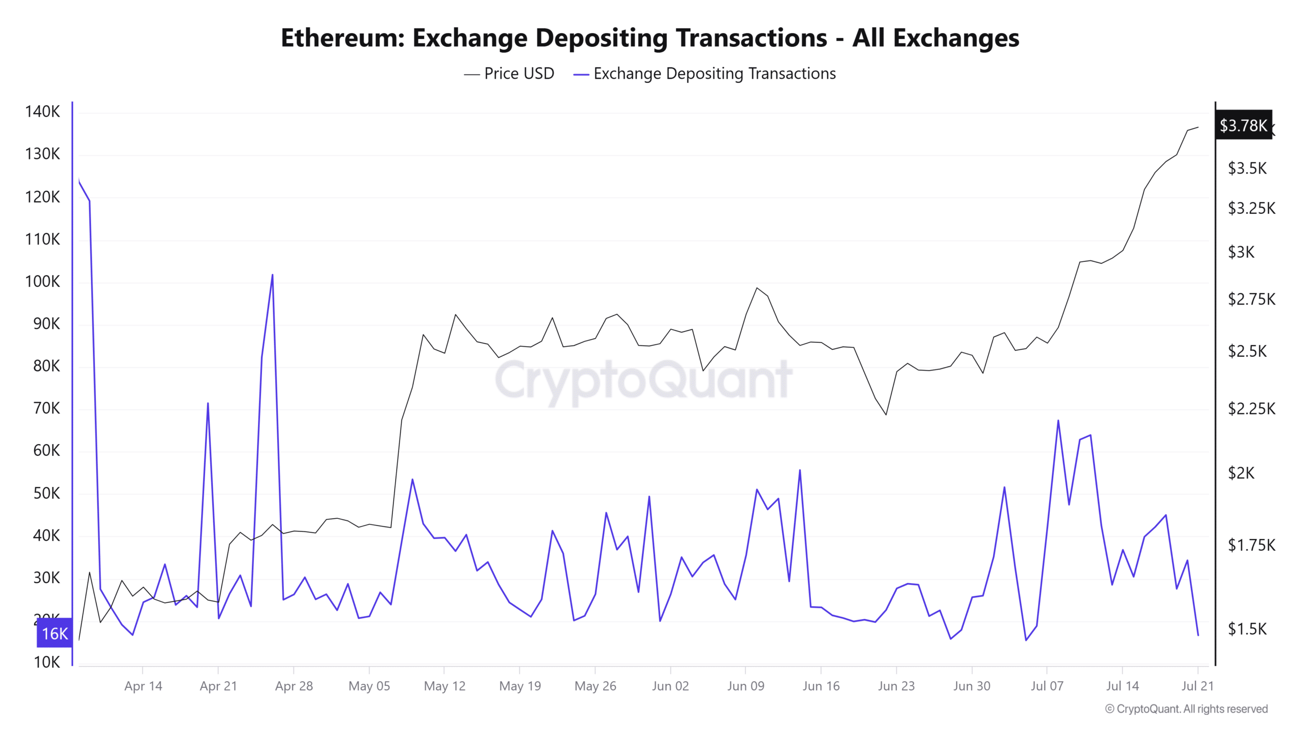 In fact, the number of depositing addresses has dropped sharply, reaching a low last seen on the 7th of July.