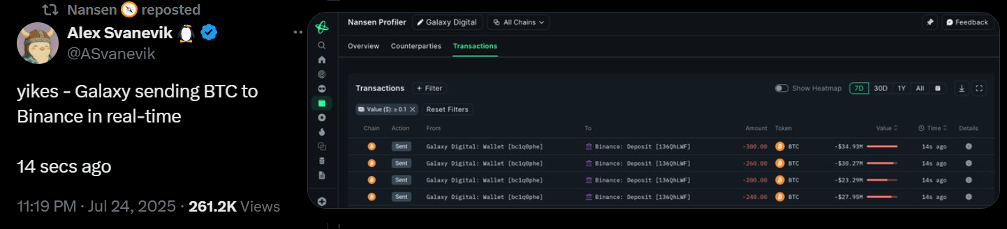 Bitcoin derivatives suggest that traders are not particularly eager to buy near $116,000, but they also have not panicked after the 7% drop from the all-time high. That is somewhat reassuring given the concerns surrounding the entity that unloaded a portion of its 80,000 BTC balance at Galaxy Digital, according to Nansen CEO Alex Svanevik.
