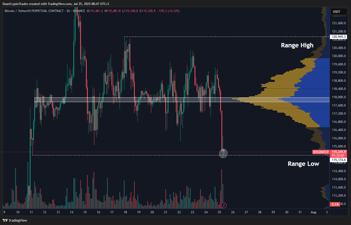 Analyst Daan Crypto Trades said that the $115,000 range low needed to hold to secure the uptrend.