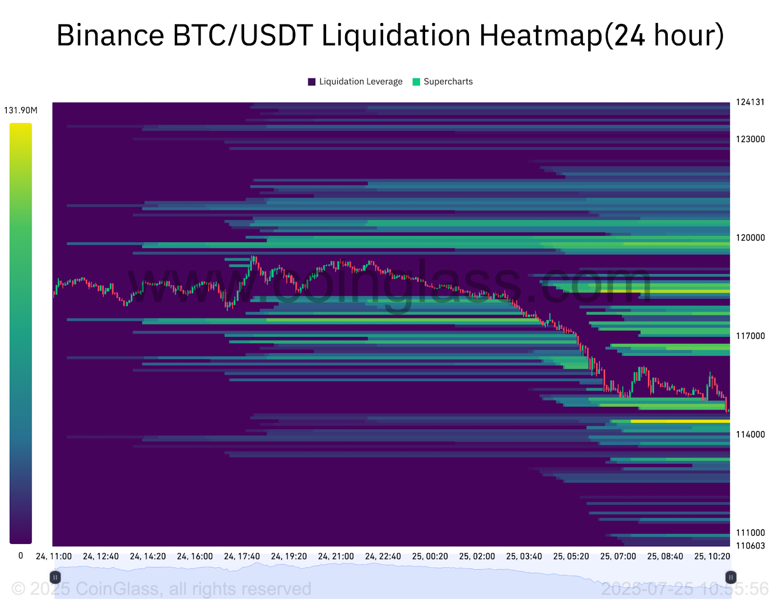 A break below the $115,000 range low was what traders needed to decide whether to add or reduce exposure.