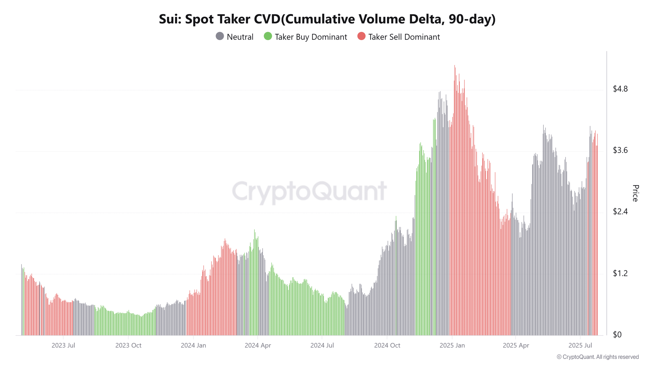 Despite the technical setup, Spot Taker CVD (90-day) painted a conflicting picture. Sell-side dominance remained firmly in control of market orders.