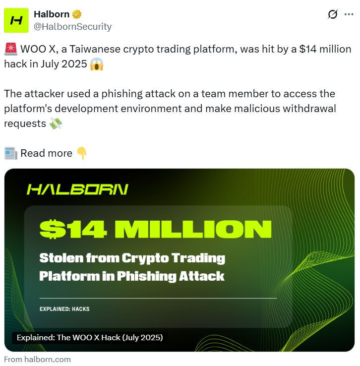 Rob Behnke, chairman of blockchain security firm Halborn, said in a report on Tuesday that bad actors responsible for the WOO X hack used social engineering to target one of the firm’s team members and access their devices.
