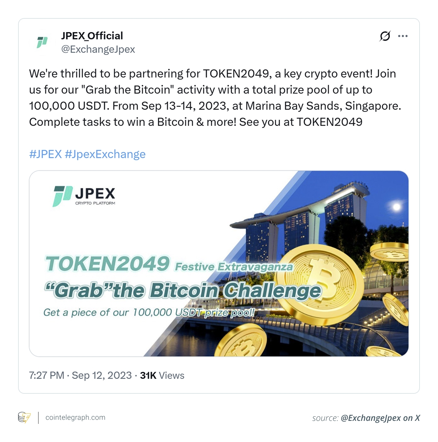 At Token2049 in Singapore, JPEX contributed $70,000 to become a platinum sponsor, using it to appear legitimate. However, after Hong Kong regulators issued warnings in mid-September 2023, JPEX abandoned its booth and disappeared from the event by the second day.
