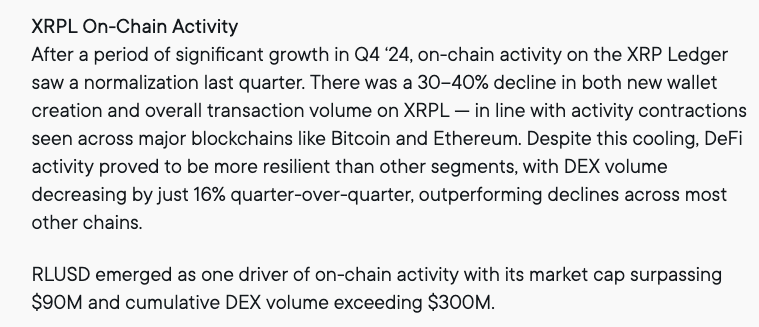 An excerpt from Ripple’s Q1 2025 XRP Markets Report released on May 6, 2025. Source: Ripple