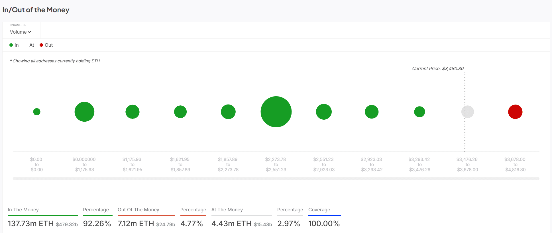 Despite increasing bearish indicators, on-chain data shows that 92.26% of Ethereum addresses remain “In The Money,” with just 4.77% in loss territory.
