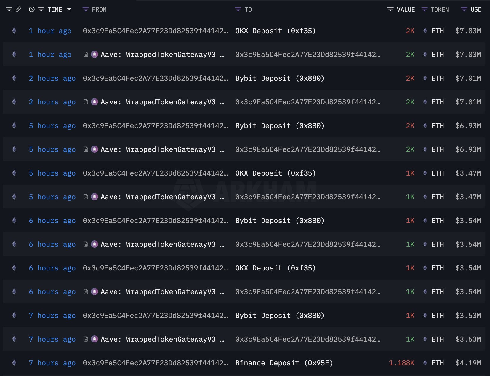 Each transfer ranged from 1,000 to 2,000 ETH, flooding centralized platforms.