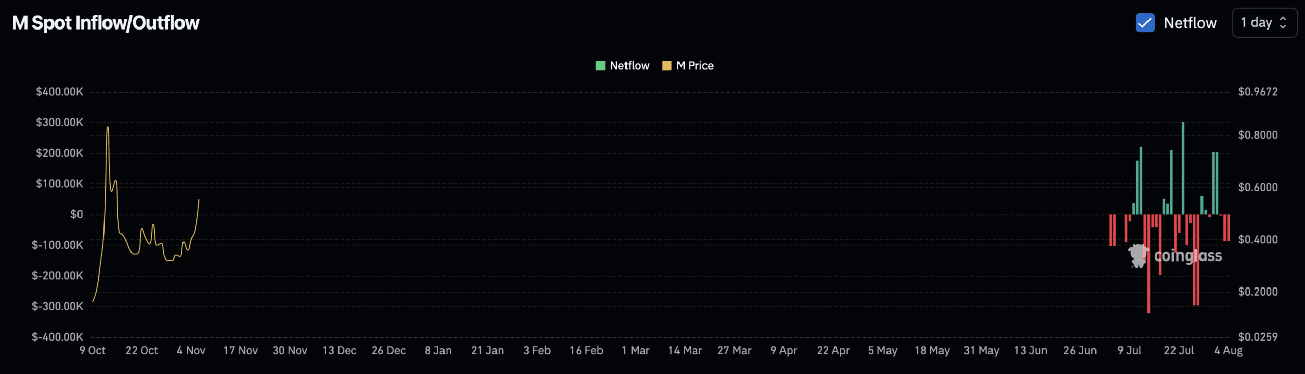 Investors in both spot and derivatives markets were pouring liquidity into M, per CoinGlass.