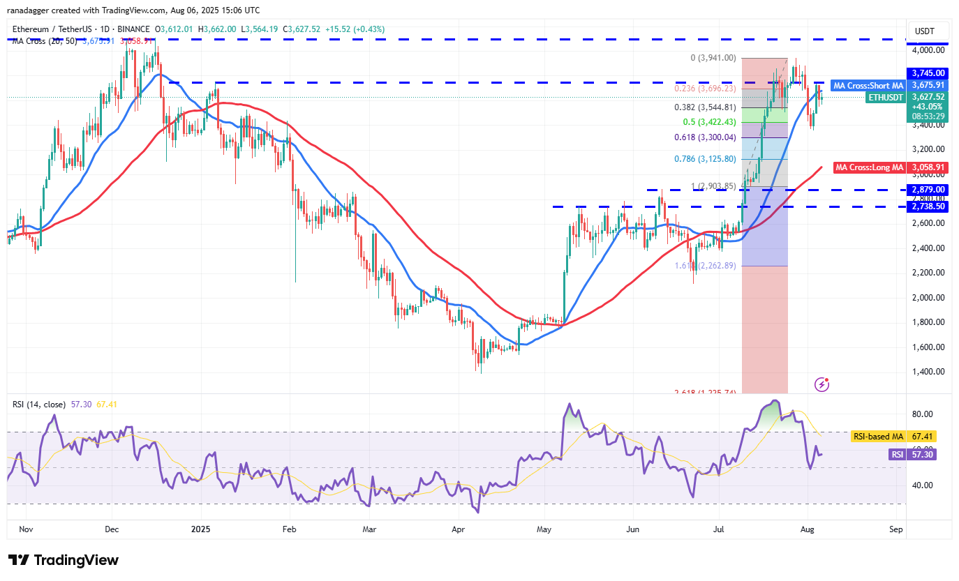 Buyers pushed Ether (ETH) above the 20-day SMA ($3,675) on Monday but could not clear the hurdle at $3,745.