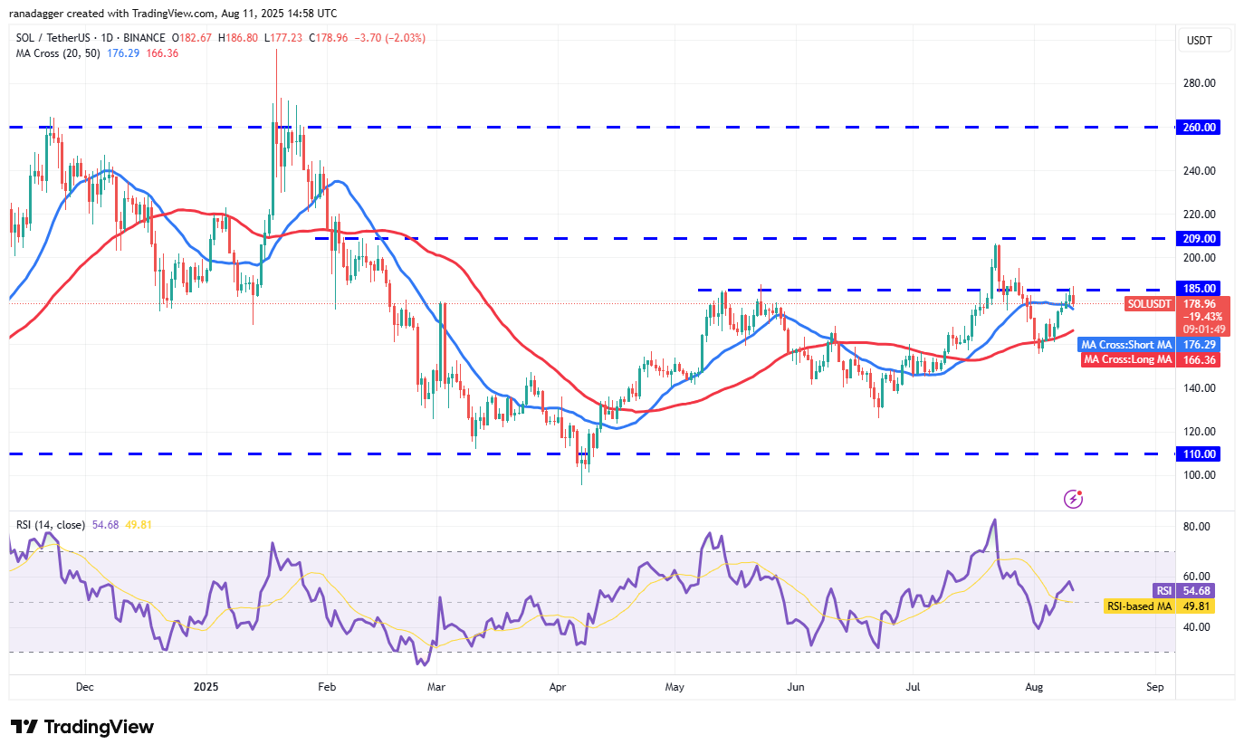 Conversely, a break below the 20-day SMA signals that the bears are aggressively defending the $185 level. Solana’s price could then drop to the 50-day SMA ($166) and later to the solid support at $155.