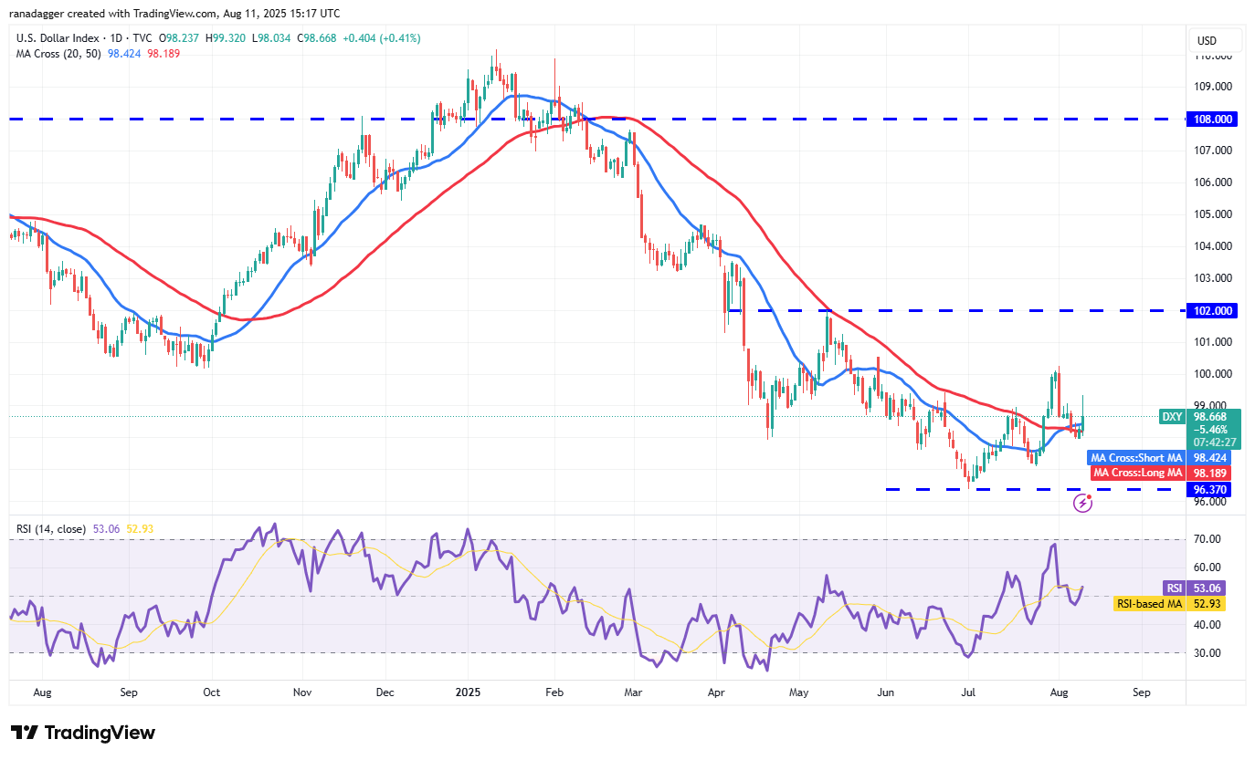 The bears are trying to guard the all-time high of $123,218, but a positive sign is that the bulls have kept up the pressure. That enhances the prospects of a break above $123,218. If that happens, the BTC/USDT pair could skyrocket toward $135,000.