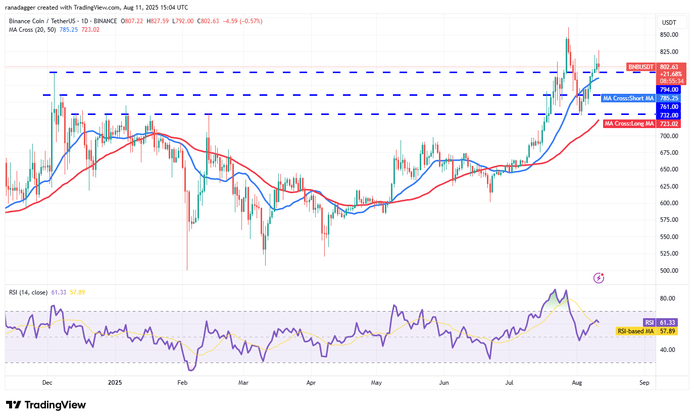 BNB (BNB) has held above the $794 level for the past two days, but the bulls are struggling to sustain the price above $815.