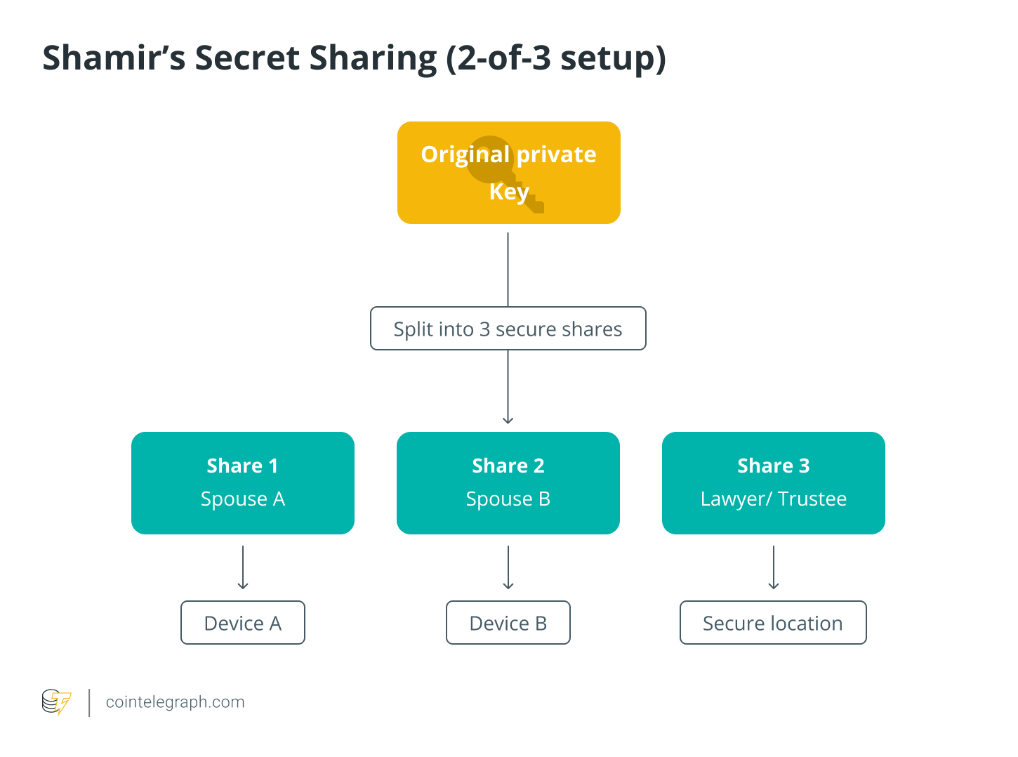 This cryptographic method lets you divide a private key into several “shares.” You can then specify how many of those shares are needed to reconstruct the original key.