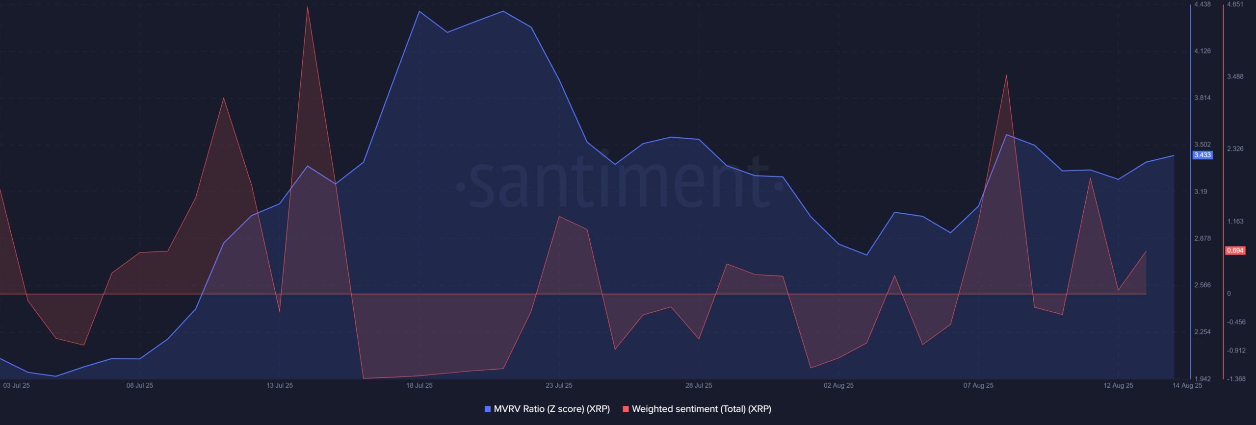At the time of writing, the Weighted Sentiment remained positive, indicating market optimism despite recent volatility. The MVRV Z-score was at 3.46, a moderately high level suggesting holders are in profit.