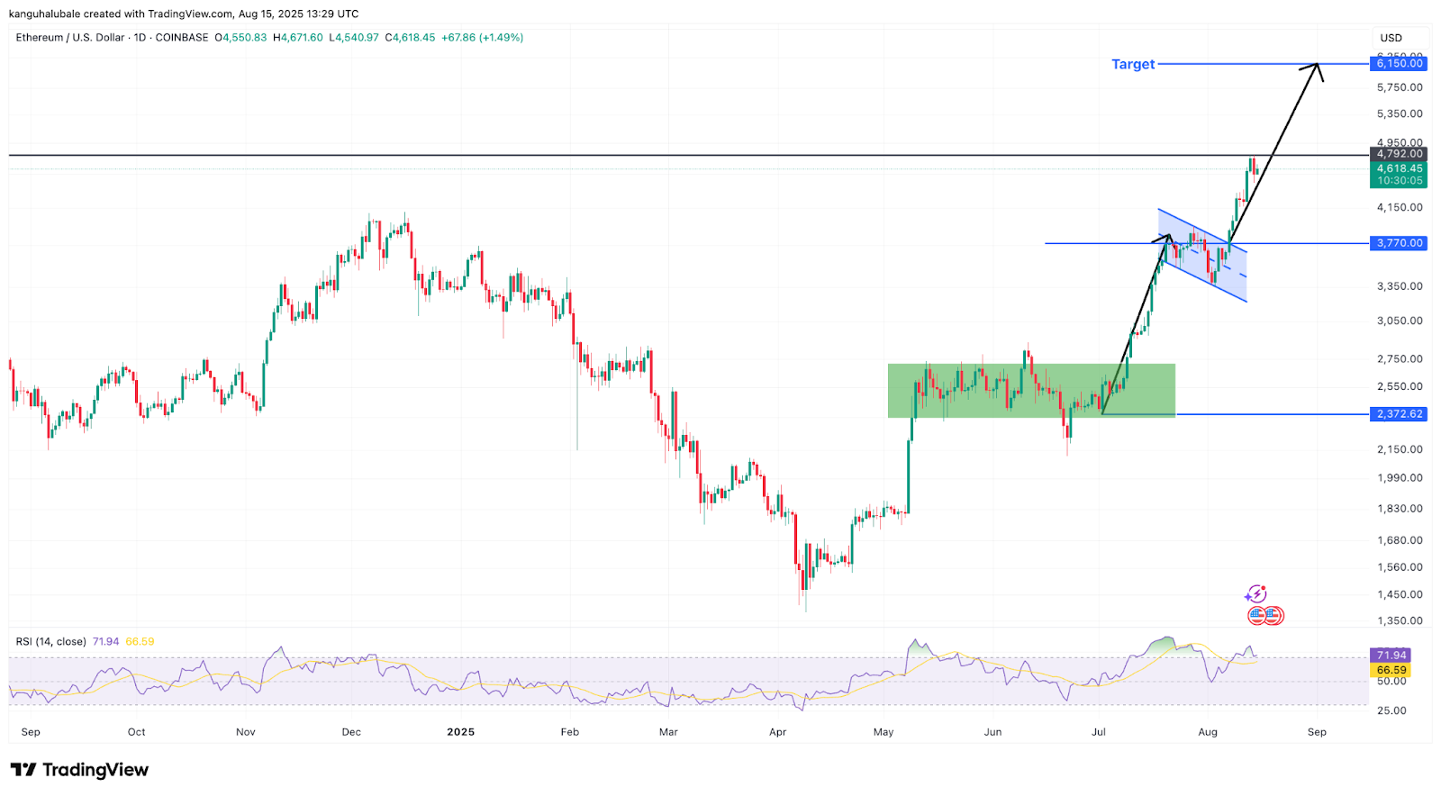 Ether (ETH) price registered a multi-year high of $4,792 on Thursday after a 45% rise from its Aug. 3 low at $3,354. The price is now consolidating below its $4,867 all-time high after validating a classic bullish continuation pattern.