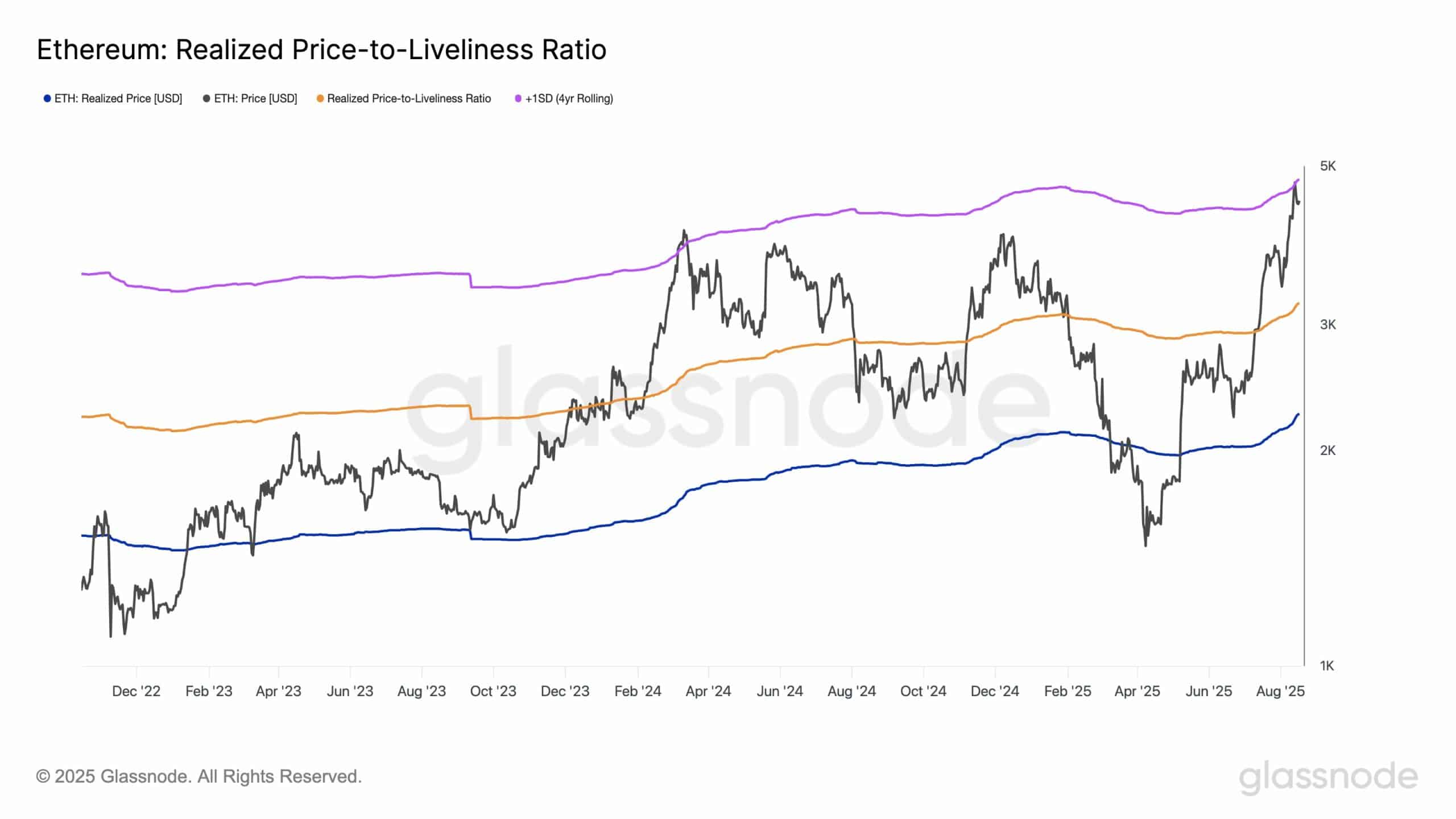 ETH has now faced rejection around the +1σ Active Realized Price level near $4.7K, a threshold that historically marks overheated conditions and strong selling pressure.