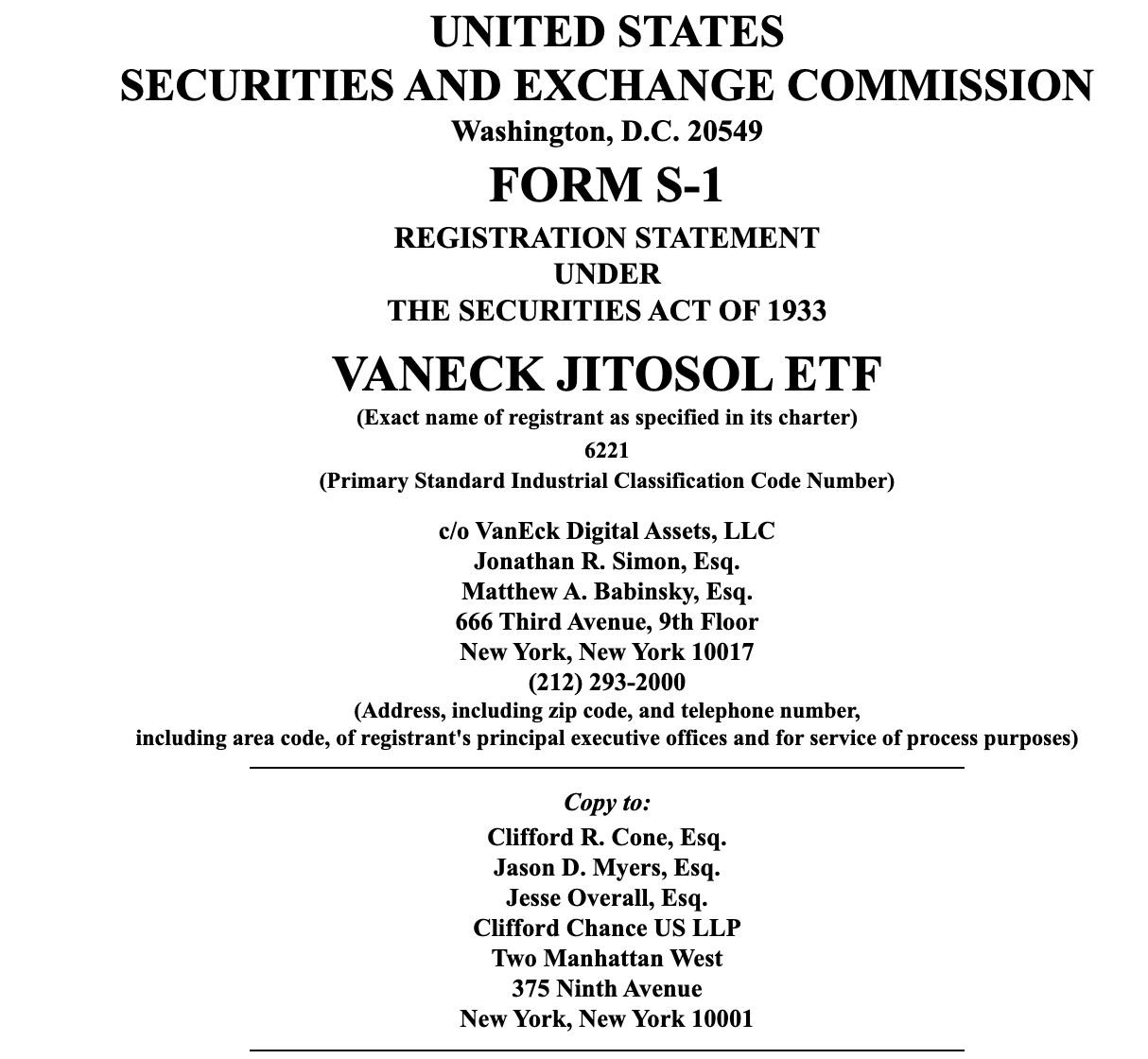 VanEck filed for a U.S. spot Solana ETF backed by liquid staking token JitoSOL — a move that could open broader exposure if approved.