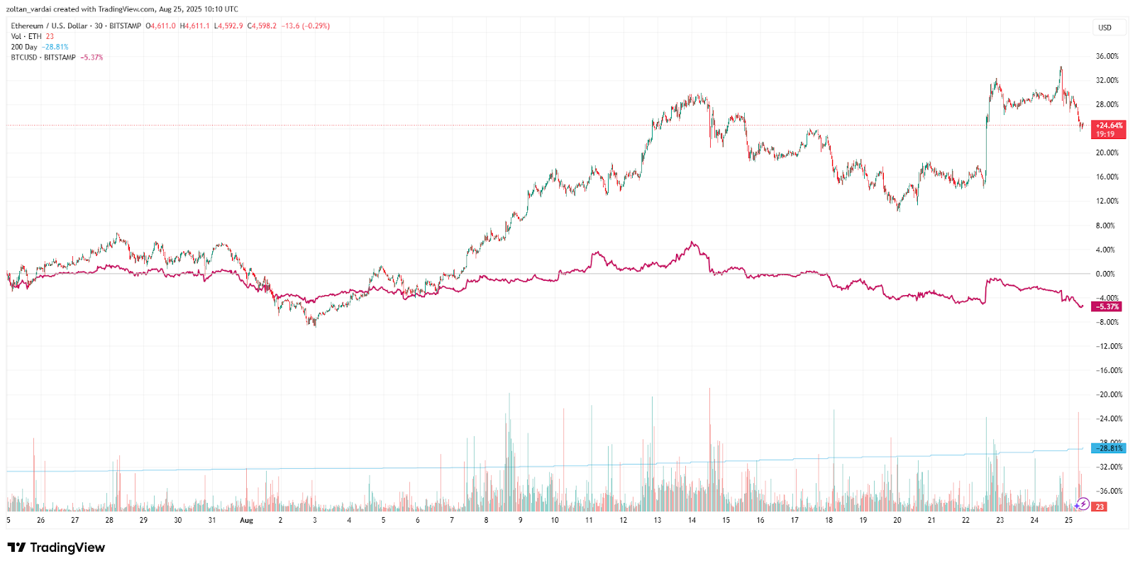“On-chain data shows capital rotation underway, with whales selling Bitcoin to increase Ethereum exposure, further accelerating ETH’s momentum,” she said.