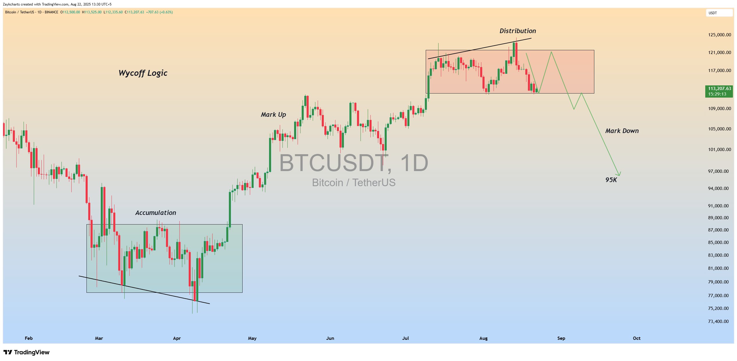 Late last week, citing Wyckoff analysis, fellow trading account ZAYK Charts put the potential downside target for BTC/USD at $95,000.