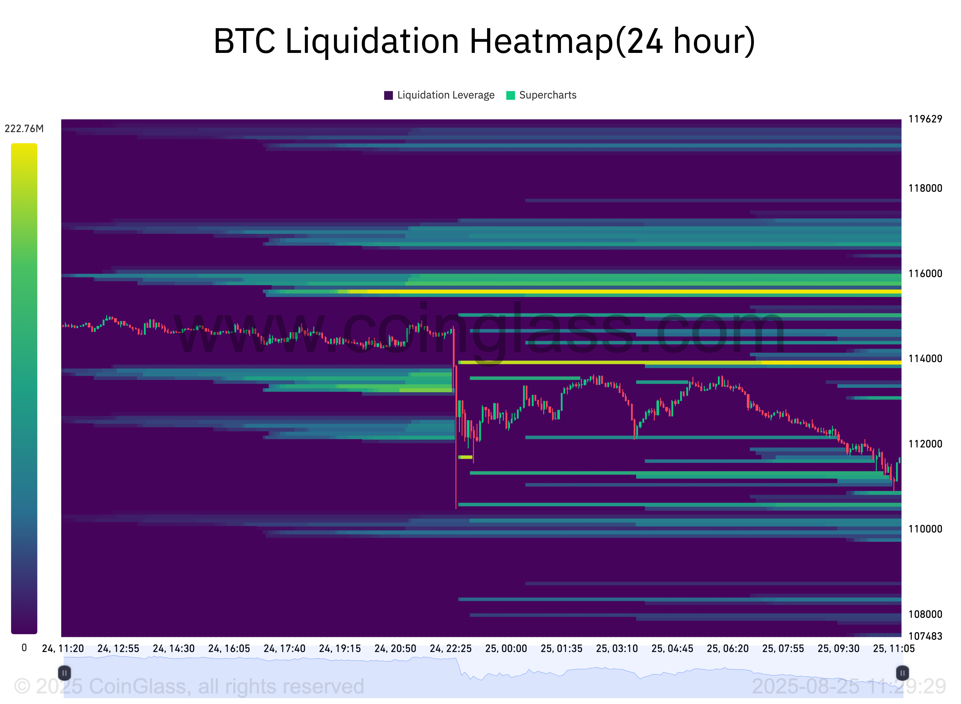 CoinGlass exchange order-book data reveals little bid support in place immediately below price into the week’s first Wall Street open.