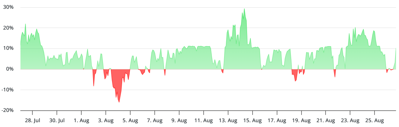 In neutral conditions, perpetual futures typically show an annualized premium between 8% and 14%, reflecting capital costs and counterparty risk. The current 10% rate indicates balanced demand, which is not inherently negative, but it is mildly concerning given that SOL’s price has already gained 39% over the past two months.