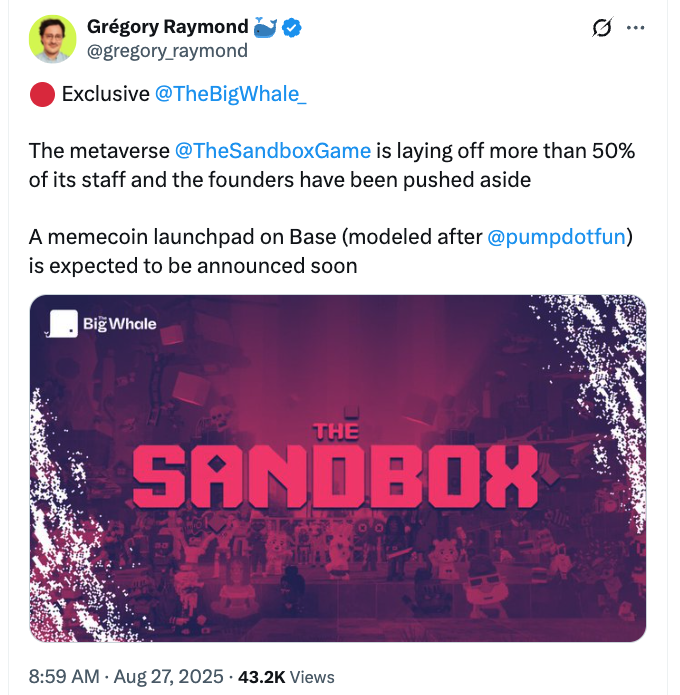 Borget’s statement followed on earlier reports alleging that The Sandbox was laying off at least 50% of its staff, with the founders being pushed aside.