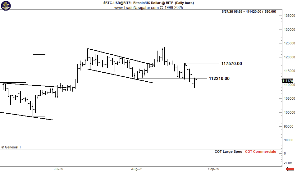 Brandt remained level-headed on the outlook, saying that BTC/USD needed to reclaim $117,500 to invalidate bearish trend reversal signals.