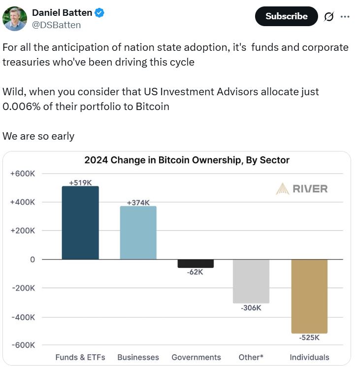 “As the top holders, their strategic positioning provides deeper liquidity and a lasting foundation for crypto’s integration into global markets,” he told Cointelegraph.