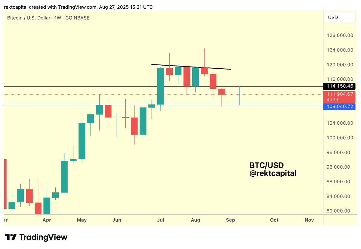 Analyst Rekt Capital said that it was important for Bitcoin to reclaim $114,000 as support to avoid a prolonged correction period.