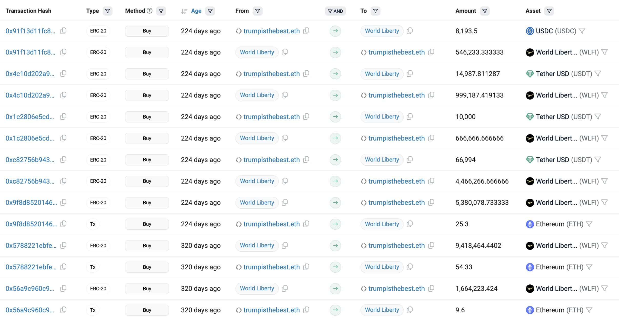 Records show one Trump supporter, who registered the domain “trumpisthebest.eth,” spent roughly $347,000 to scoop up 23.14 million WLFI tokens.