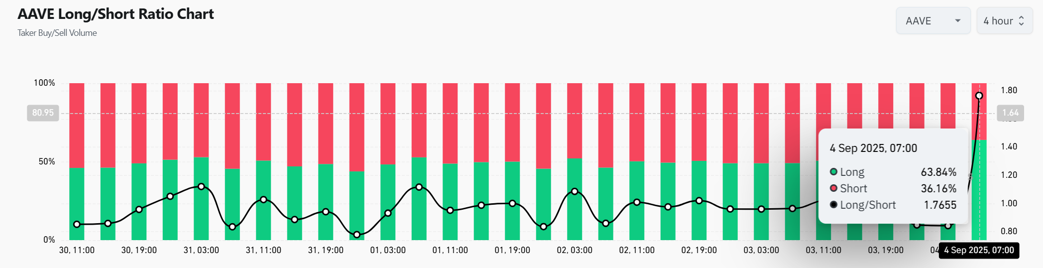 The imbalance reflects strong trader confidence that AAVE can extend higher from current levels.