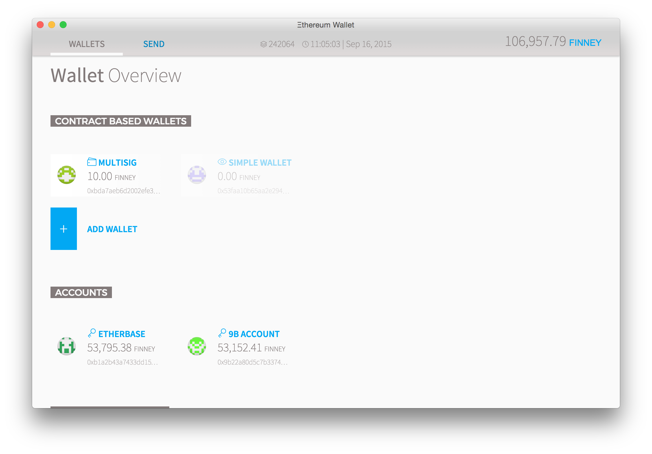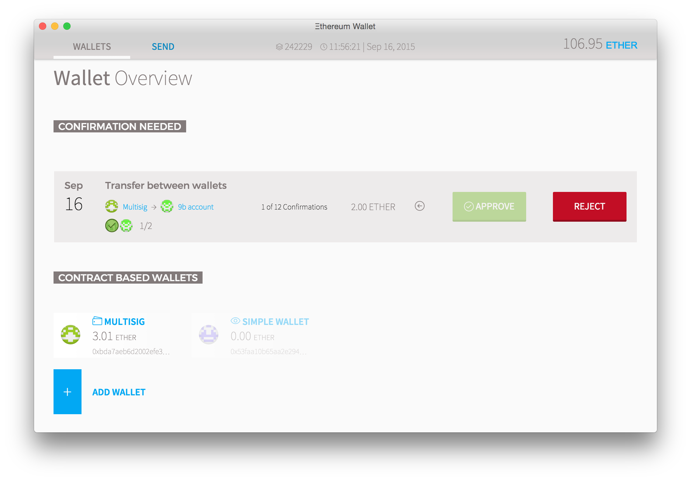 - A simple wallet – works like a normal account (additional features are being worked on; e.g. adding owners, setting a daily limit)