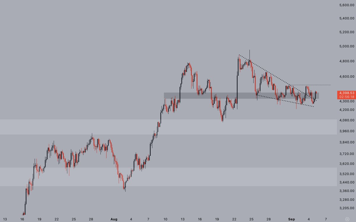 Note that this level has capped the price since the ETH slipped to $4,300 on Aug. 29.