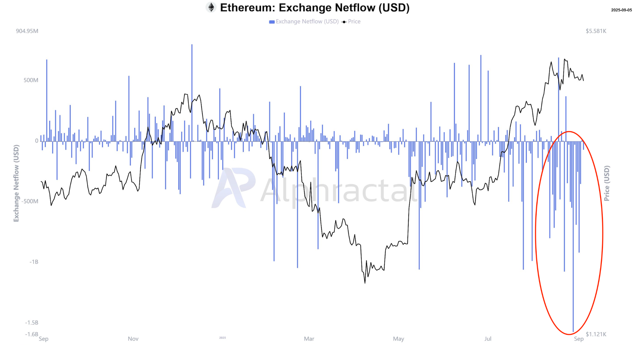 ETH exchange flux balance. Source: Alphractal