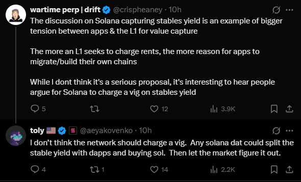 However, critics pointed out that the move could escalate friction with L1s, DATs, and force apps to opt for their own chains to avoid sharing the yield.