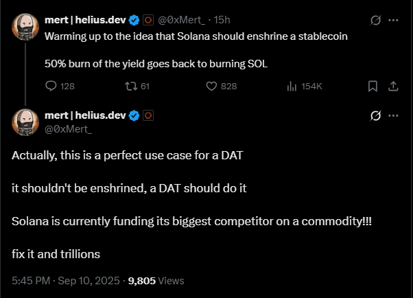 And top issuers are fighting for this deal. So, why not do the same for Solana? Well, that’s the proposal Mert Mumtaz, founder of Solana-based Helius Labs, floated.
