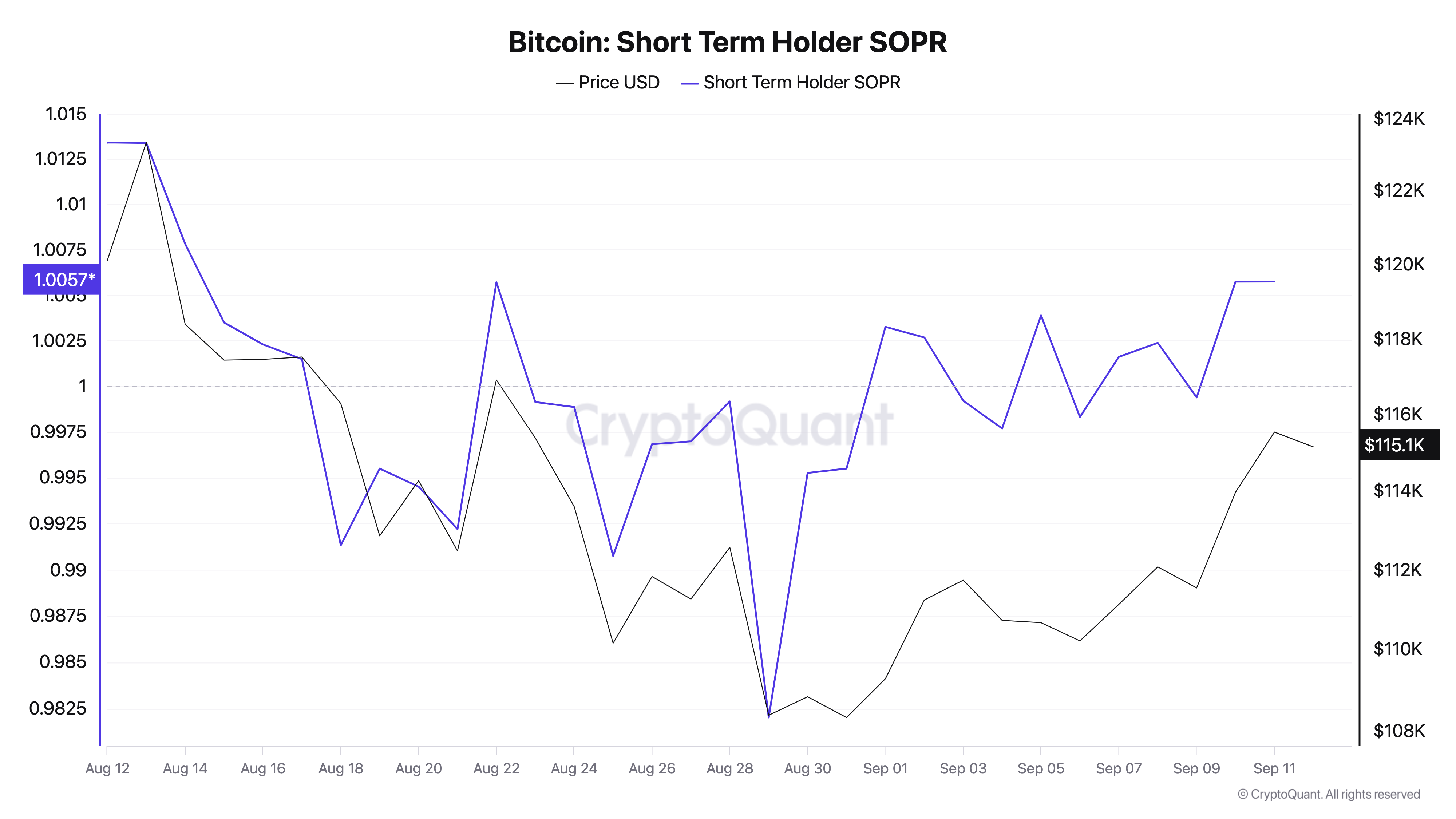 CryptoQuant data shows the spent output profit ratio (SOPR) of these investors only just beginning to flip positive on Friday, after a nearly month-long period in which STH coins were moving onchain at a loss.