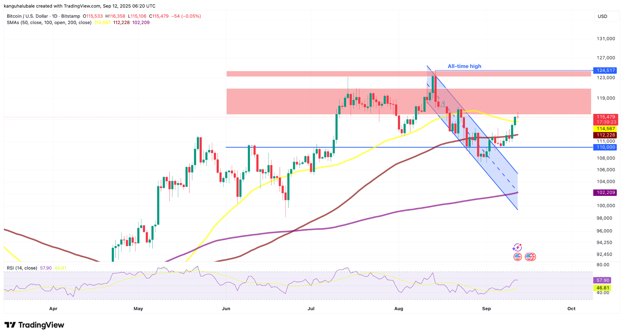 Another area of importance stretches from the local low at $107,200 (reached on Sept. 1) to the  $110,000 psychological level.