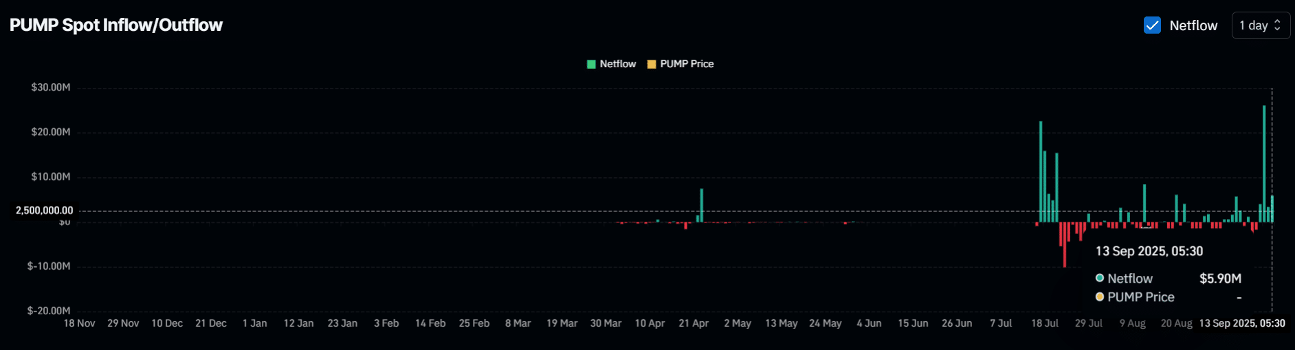 In the last 24 hours alone, $5.90 million worth of PUMP has moved into exchanges.