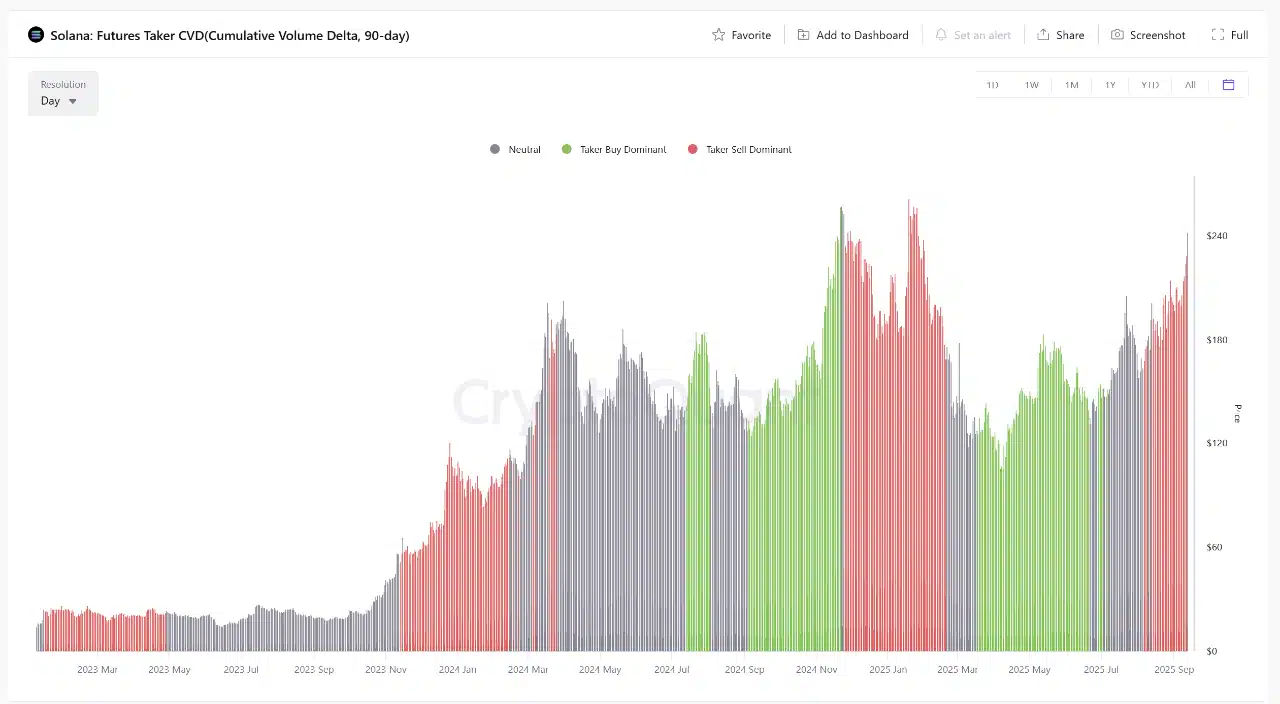 Solana’s 90-day Spot Taker CVD showed steady, persistent buying pressure, a sign of accumulation by retail investors.
